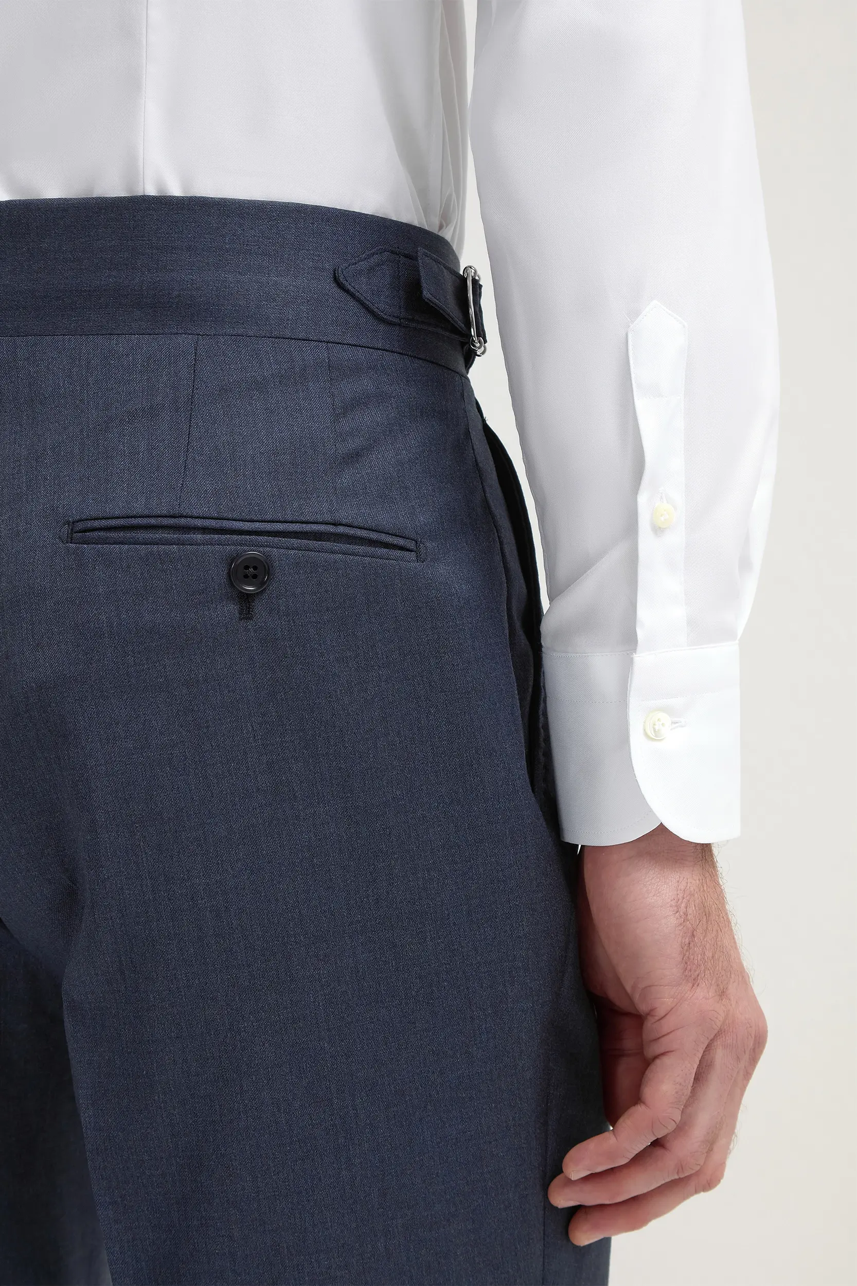 All our trousers come with an unfinished hem so you can adjust the length to your preference. We recommend the addition of a 4.5 to 5 cm turn-up.
